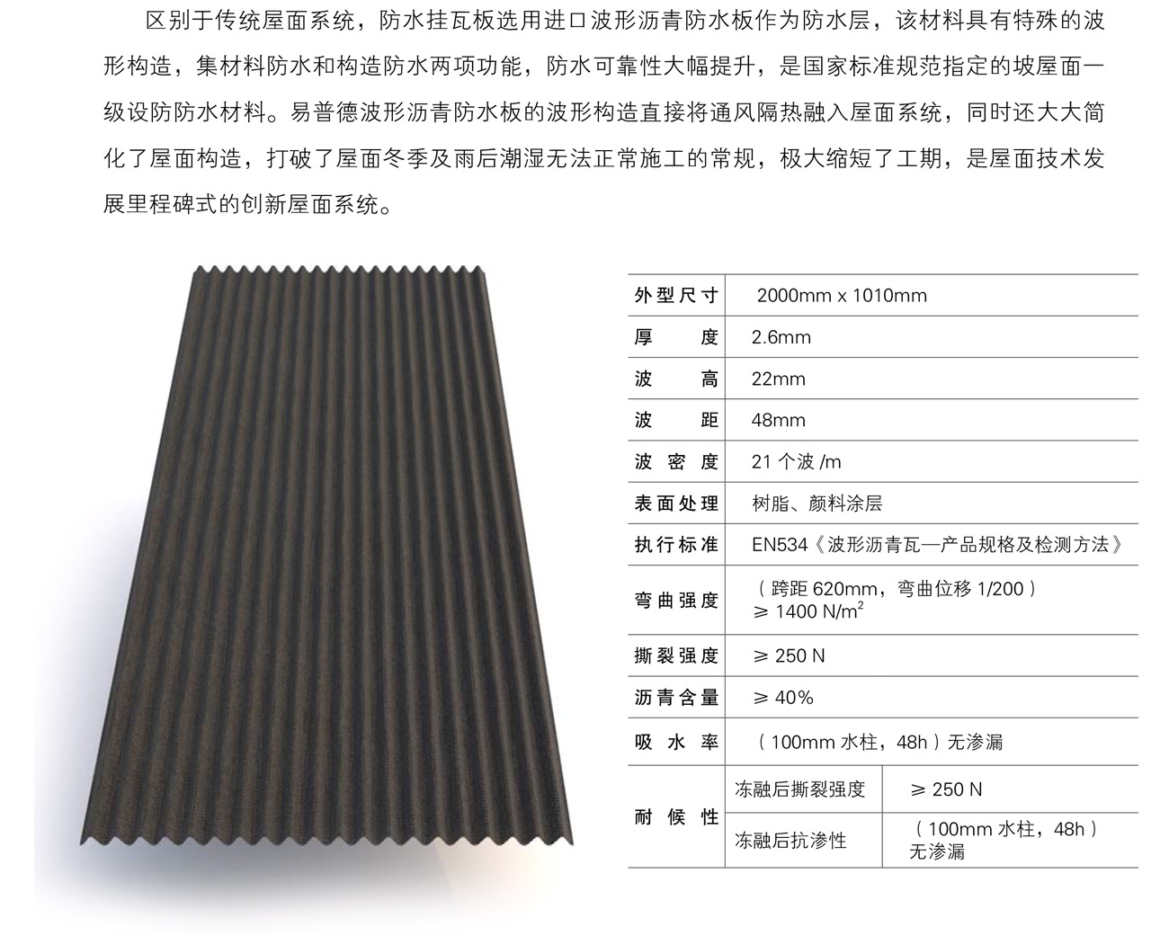 借鑒歐洲坡屋面防水理念,將平面防水改為立體防水,采用新型防水板材料,將材料防水和構(gòu)造防水于一身,配合屋面系統(tǒng)組件,實(shí)現(xiàn)全天候全干作業(yè)。節(jié)省了屋面各類(lèi)保護(hù)層次,打破了屋面冬季及雨后陰濕無(wú)法施工的常規(guī),縮短了工期,提升系統(tǒng)安全性能。